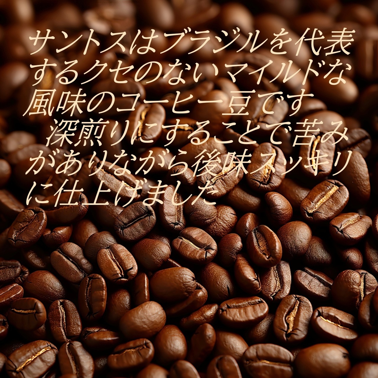 深煎り専門 和み珈琲 ブラジルサントス 100gは、自家焙煎した新鮮な珈琲豆を使用しています。深煎りにこだわり、豊かなコクと深い味わいを楽しむことができます。ブラジルサントスの豆は、風味豊かでフルーティーな味わいが特徴。朝の目覚めやリラックスタイムに最適です。コーヒー好きな方におすすめの逸品です。