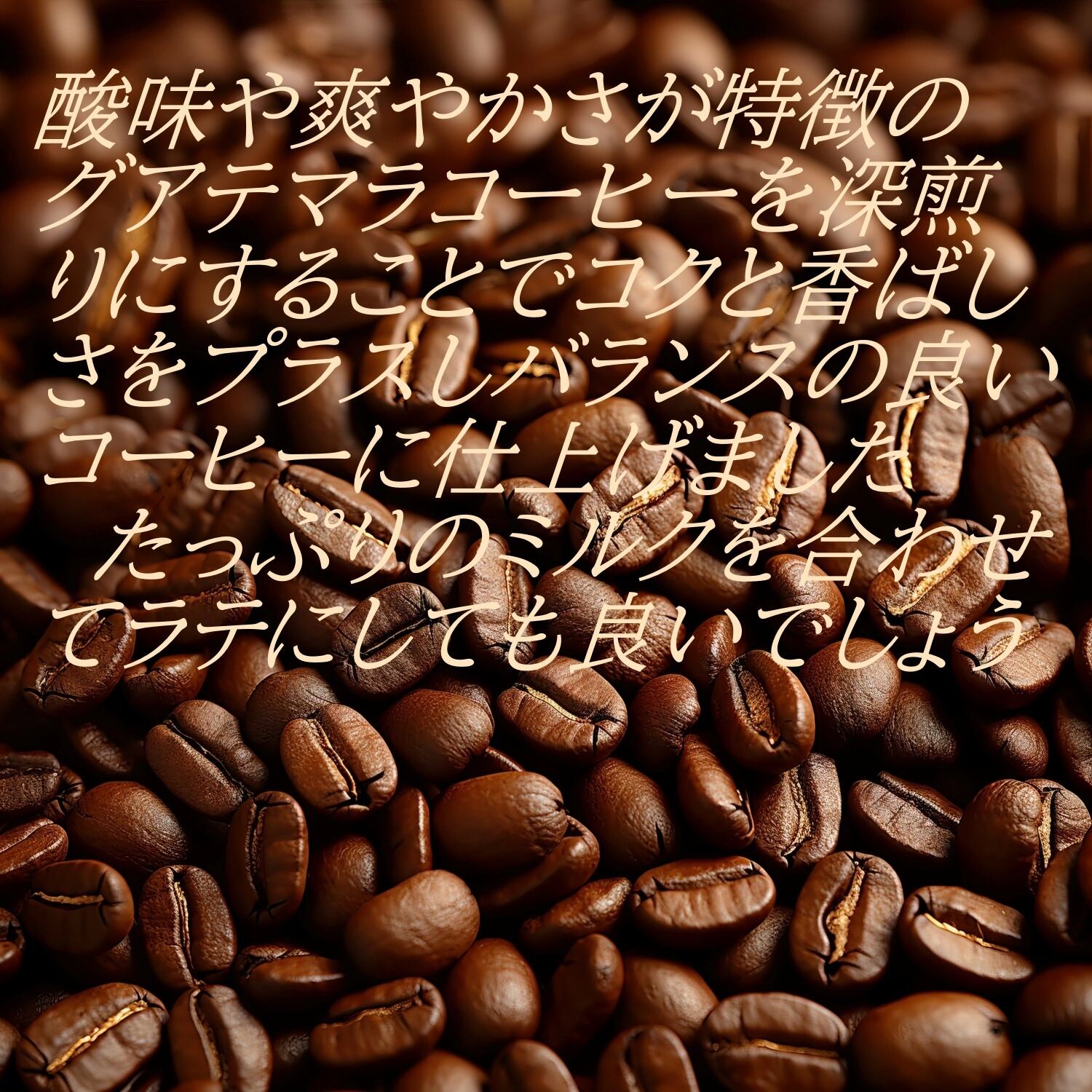 グアテマラを深煎りにすることでカカオの香りや上品なコクを引き立たせしっかりとした風味を感じれるコーヒーに仕上げました